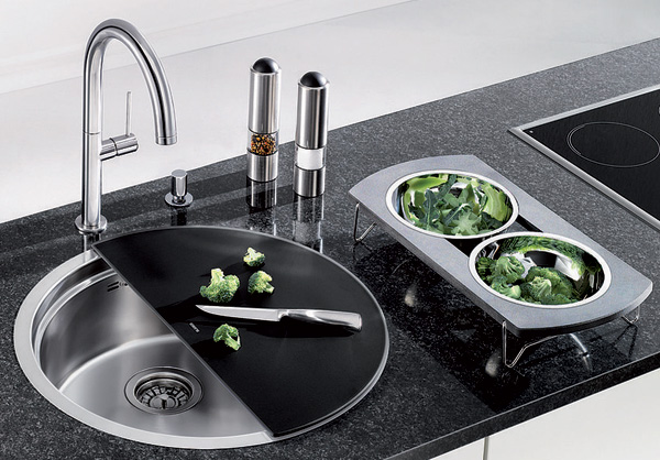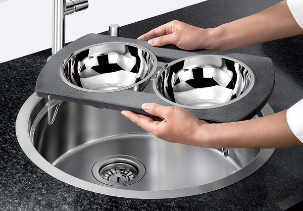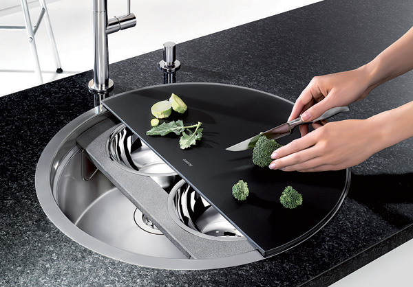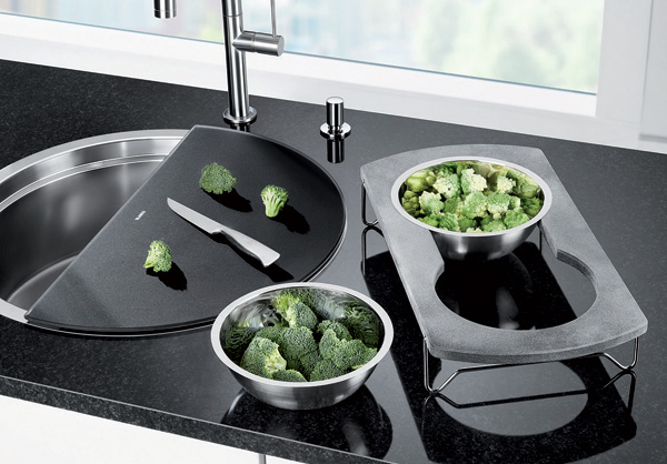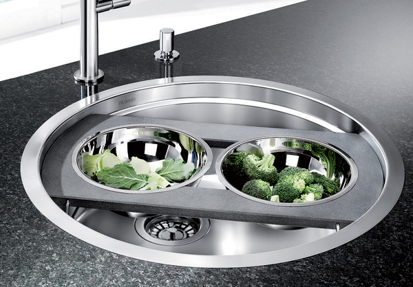 A mosogatóiról, és más konyhai kiegészítőiről ismert Blanco cég Blancoronis néven alkotta meg új mosogatóját, mely a főzést megelőző műveleteket az alapanyagok mosását, és darabolását könnyíti meg helytakarékos és kényelmes kialakításával. A nagyméretű kerek tál a terjedelmesebb edények tisztítására önmagában is alkalmas. Azonban belső kialakítása lehetővé teszi, hogy például a feldarabolt zöldségek egyenesen egy tálba érkezzenek, a vágólap pedig pontosan a mosogató méretét követi és igény szerint 360 fokban elforgatható. A vágólap és a hídelem a tálakkal a konyha más pontjain külön is használható. Higiénikus kényelmes és szép megoldás.